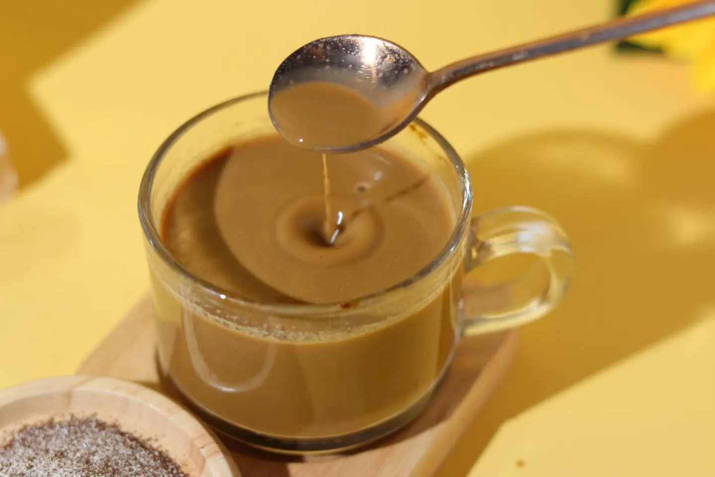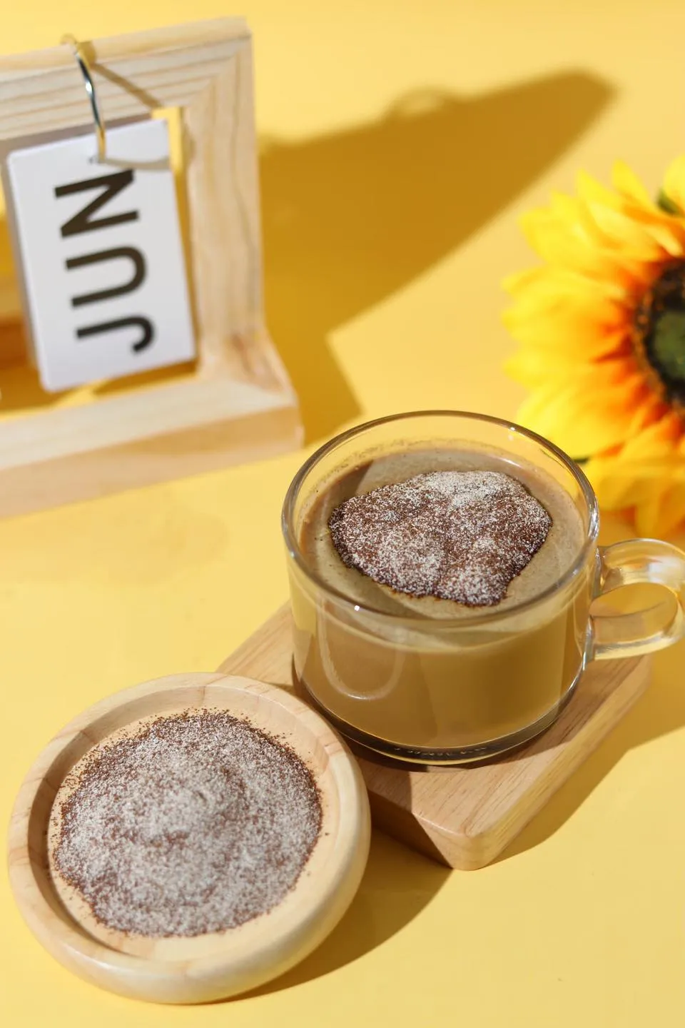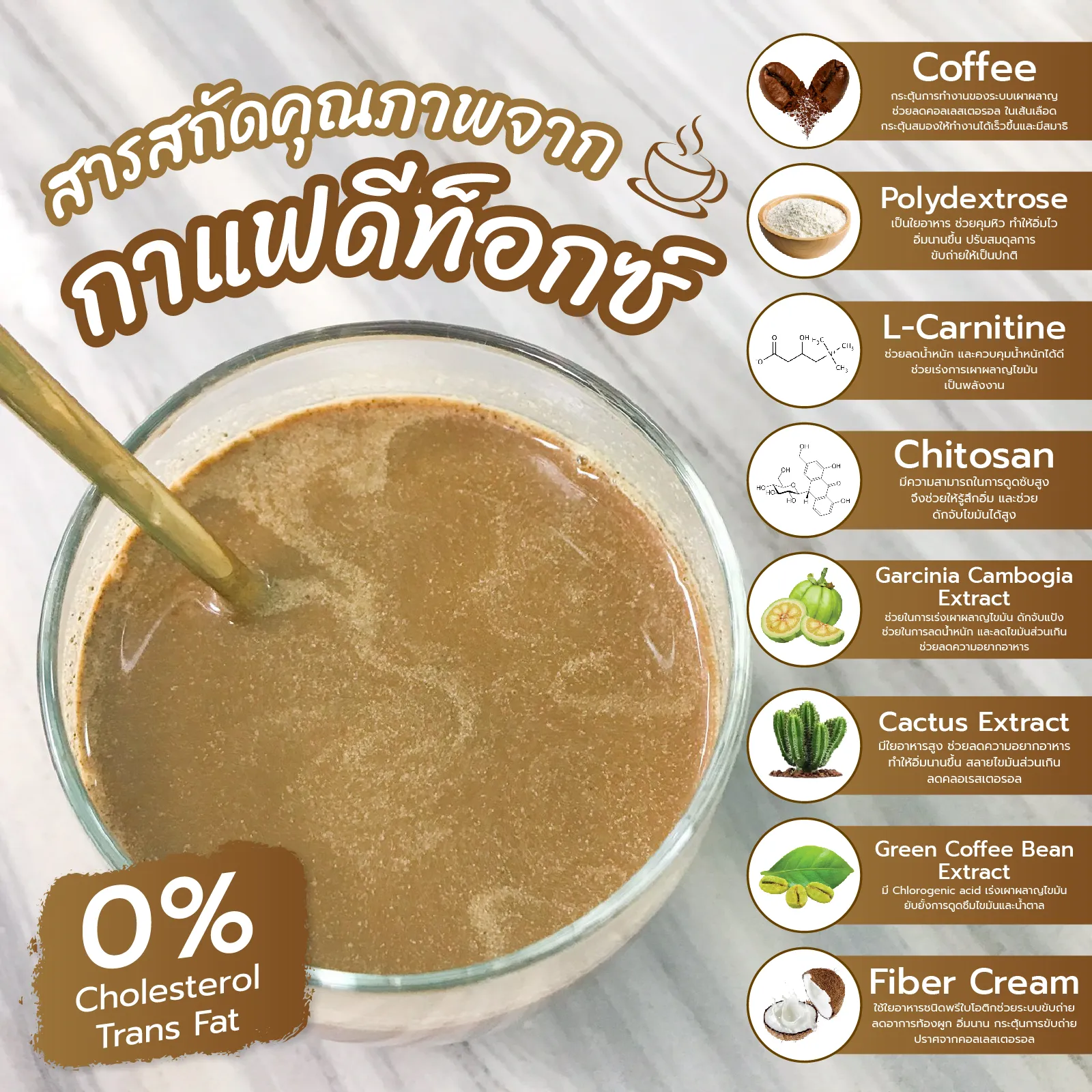 กาแฟโรบัสต้าผสมอาราบิกาเกรดพรีเมี่ยม ปรุงสำเร็จ รสชาติกลมกล่อม ตัวครีมใช้เป็นครีมเทียมจากมะพร้าว
